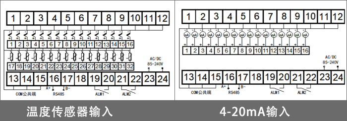 | 24 | DP1 | 通道1小數點 | 小數點位置 當輸入信號為溫度信號時:0-1 當輸入信號為4-20mA時:0-3 |